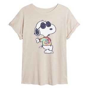Peanuts - Joe Cool' Tie Dye - Women's Oversized T-Shirt - From the best-loved comic strip in history comes officially licensed PEANUTS apparel for fans everywhere. Show your love for Charlie Brown, Snoopy, Woodstock, Lucy, Linus, Pigpen and the whole gang. Copyright Peanuts.
