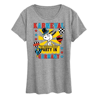 Peanuts - Karneval Biggest Oldest Party Germany - Women's Oversized T-Shirt - From the best-loved comic strip in history comes officially licensed PEANUTS apparel for fans everywhere. Show your love for Charlie Brown, Snoopy, Woodstock, Lucy, Linus, Pigpen and the whole gang. Copyright Peanuts.