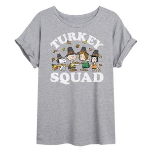 Peanuts - Turkey Squad - Women's Oversized T-Shirt - From the best-loved comic strip in history comes officially licensed PEANUTS apparel for fans everywhere. Show your love for Charlie Brown, Snoopy, Woodstock, Lucy, Linus, Pigpen and the whole gang. Copyright Peanuts.