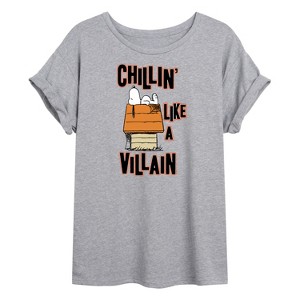 Peanuts - Halloween Chillin' Art - Women's Oversized T-Shirt - From the best-loved comic strip in history comes officially licensed PEANUTS apparel for fans everywhere. Show your love for Charlie Brown, Snoopy, Woodstock, Lucy, Linus, Pigpen and the whole gang. Copyright Peanuts.