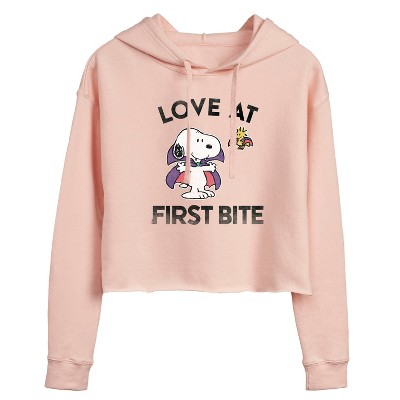 Women's Peanuts Patty Stole My Heart Cropped Graphic Hoodie - Blush - Large