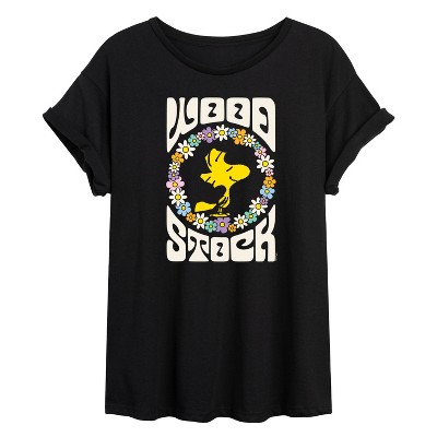 Peanuts - Retro Floral Woodstock - Women's Short Sleeve Graphic T-Shirt - From the best-loved comic strip in history comes officially licensed PEANUTS apparel for fans everywhere. Show your love for Charlie Brown, Snoopy, Woodstock, Lucy, Linus, Pigpen and the whole gang. Copyright Peanuts.