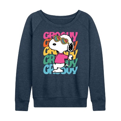 Peanuts - Retro Flower Rainbow - Women's Lightweight French Terry Long Sleeve Shirt - From the best-loved comic strip in history comes officially licensed PEANUTS apparel for fans everywhere. Show your love for Charlie Brown, Snoopy, Woodstock, Lucy, Linus, Pigpen and the whole gang. Copyright Peanuts.