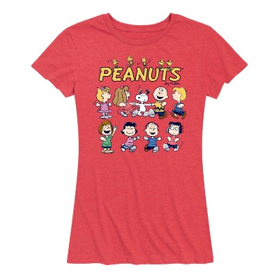 Women's Peanuts Retro Flower Rainbow Short Sleeve Graphic T-Shirt - Heather Red - Small