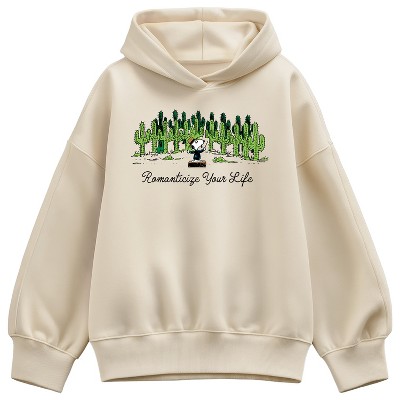 Peanuts - Romanticize Life - Women's Oversized Fleece Crew Sweatshirt - From the best-loved comic strip in history comes officially licensed PEANUTS apparel for fans everywhere. Show your love for Charlie Brown, Snoopy, Woodstock, Lucy, Linus, Pigpen and the whole gang. Copyright Peanuts.