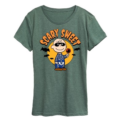 Peanuts - Scary Sweet - Juniors Cropped Cotton Blend T-Shirt - From the best-loved comic strip in history comes officially licensed PEANUTS apparel for fans everywhere. Show your love for Charlie Brown, Snoopy, Woodstock, Lucy, Linus, Pigpen and the whole gang. Copyright Peanuts.