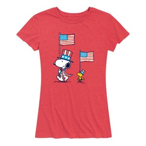 Women's - Peanuts - Snoopy Woodstock American Flag March Short Sleeve Graphic T-Shirt - 1 of 4