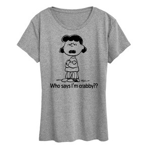 Peanuts - Who Says I'm Crabby Lucy - Women's Short Sleeve Graphic T-Shirt - From the best-loved comic strip in history comes officially licensed PEANUTS apparel for fans everywhere. Show your love for Charlie Brown, Snoopy, Woodstock, Lucy, Linus, Pigpen and the whole gang. Copyright Peanuts.