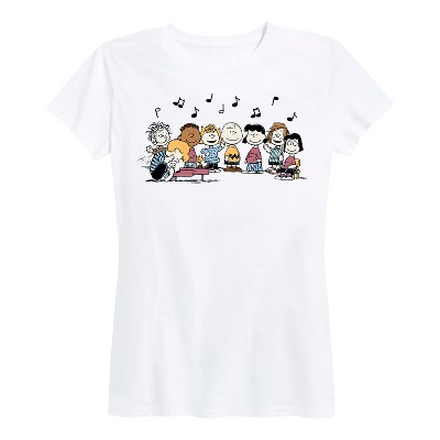 Peanuts - Peanuts Group Kanji - Women's Short Sleeve Graphic T-Shirt - From the best-loved comic strip in history comes officially licensed PEANUTS apparel for fans everywhere. Show your love for Charlie Brown, Snoopy, Woodstock, Lucy, Linus, Pigpen and the whole gang. Copyright Peanuts.