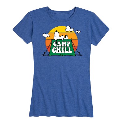 Women's Peanuts Snoopy and Woodstock Hiking Short Sleeve Graphic T-Shirt - Heather Royal Blue - Small