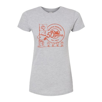 Women's Peanuts Snoopy and Woodstock Love Stacked Fitted Graphic T-Shirt - Heather Grey - X-Large