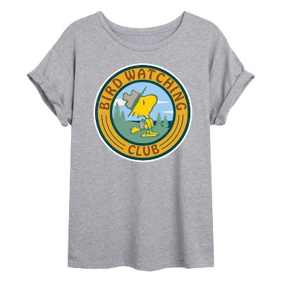 Women's Peanuts Snoopy and Woodstock Outdoor Cooking Oversized Graphic T-Shirt - Heather Grey - Medium