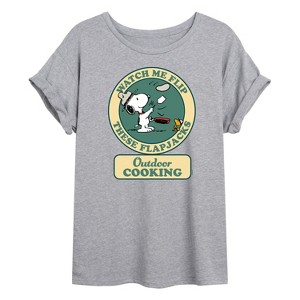 Women's - Peanuts - Snoopy and Woodstock Outdoor Cooking Oversized Graphic T-Shirt - 1 of 4