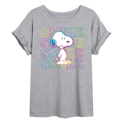 Women's Peanuts Snoopy And Woodstock Oversized Graphic T-Shirt - Heather Grey - Small