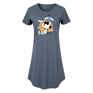 Women's Peanuts Snoopy Beach Day Graphic T-shirt Dress - Heather Blue - Medium - 1 of 4