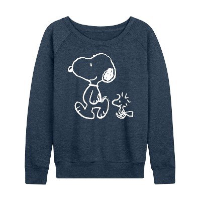 Women's Peanuts Snoopy Boo Sign Lightweight French Terry Wide Neck Long Sleeve Graphic Shirt - Heather Indigo - X-Large