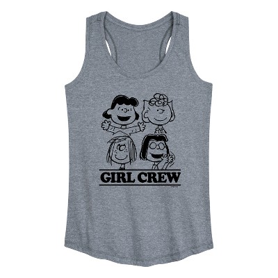 Peanuts - Snoopy Crew - Women's Racerback Graphic Tank - From the best-loved comic strip in history comes officially licensed PEANUTS apparel for fans everywhere. Show your love for Charlie Brown, Snoopy, Woodstock, Lucy, Linus, Pigpen and the whole gang. Copyright Peanuts.