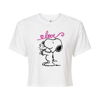 Women's - Peanuts - Snoopy Dancing Hearts Cropped Graphic T-Shirt