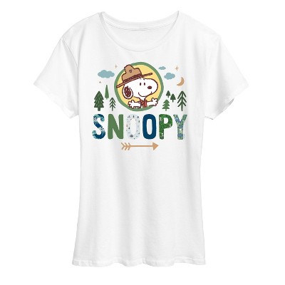 Peanuts - Hawaii Snoopy - Women's Short Sleeve Graphic T-Shirt - From the best-loved comic strip in history comes officially licensed PEANUTS apparel for fans everywhere. Show your love for Charlie Brown, Snoopy, Woodstock, Lucy, Linus, Pigpen and the whole gang. Copyright Peanuts.