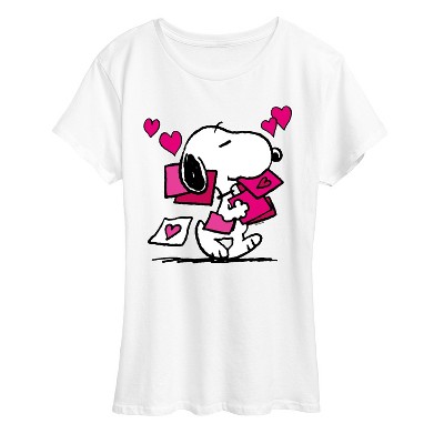 Peanuts - Snoopy Heart Cupcake - Women's Short Sleeve Graphic T-Shirt - From the best-loved comic strip in history comes officially licensed PEANUTS apparel for fans everywhere. Show your love for Charlie Brown, Snoopy, Woodstock, Lucy, Linus, Pigpen and the whole gang. Copyright Peanuts.