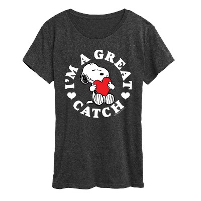 Peanuts - Snoopy Heart Throb - Women's Short Sleeve Graphic T-Shirt - From the best-loved comic strip in history comes officially licensed PEANUTS apparel for fans everywhere. Show your love for Charlie Brown, Snoopy, Woodstock, Lucy, Linus, Pigpen and the whole gang. Copyright Peanuts.