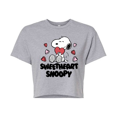 Women's - Peanuts - Snoopy Is My Valentine Cropped Graphic T-Shirt