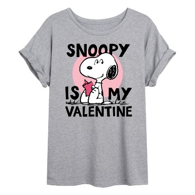 Peanuts - Snoopy is my Valentine - Juniors Oversized Graphic T-Shirt - From the best-loved comic strip in history comes officially licensed PEANUTS apparel for fans everywhere. Show your love for Charlie Brown, Snoopy, Woodstock, Lucy, Linus, Pigpen and the whole gang. Copyright Peanuts.