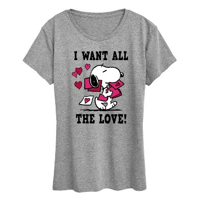 Peanuts - Snoopy Is My Valentine - Women's Short Sleeve Graphic T-Shirt - From the best-loved comic strip in history comes officially licensed PEANUTS apparel for fans everywhere. Show your love for Charlie Brown, Snoopy, Woodstock, Lucy, Linus, Pigpen and the whole gang. Copyright Peanuts.