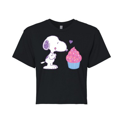 Women's - Peanuts - Snoopy Pastel Rainbow Heart Cropped Graphic T-Shirt
