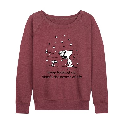 Peanuts - Snoopy Patchwork Doghouse - Women's Lightweight French Terry Long Sleeve Shirt - From the best-loved comic strip in history comes officially licensed PEANUTS apparel for fans everywhere. Show your love for Charlie Brown, Snoopy, Woodstock, Lucy, Linus, Pigpen and the whole gang. Copyright Peanuts.