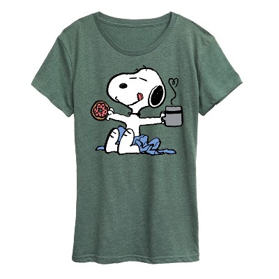 Peanuts - Snoopy Puffer Coat Snow - Women's Short Sleeve Graphic T-Shirt - From the best-loved comic strip in history comes officially licensed PEANUTS apparel for fans everywhere. Show your love for Charlie Brown, Snoopy, Woodstock, Lucy, Linus, Pigpen and the whole gang. Copyright Peanuts.