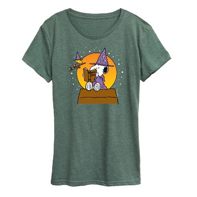 Peanuts - Snoopy Pumpkin Patch -Women's Short Sleeve Graphic T-Shirt - From the best-loved comic strip in history comes officially licensed PEANUTS apparel for fans everywhere. Show your love for Charlie Brown, Snoopy, Woodstock, Lucy, Linus, Pigpen and the whole gang. Copyright Peanuts.