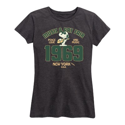 Peanuts - Snoopy Road Trip - Women's Short Sleeve Graphic T-Shirt - From the best-loved comic strip in history comes officially licensed PEANUTS apparel for fans everywhere. Show your love for Charlie Brown, Snoopy, Woodstock, Lucy, Linus, Pigpen and the whole gang. Copyright Peanuts.