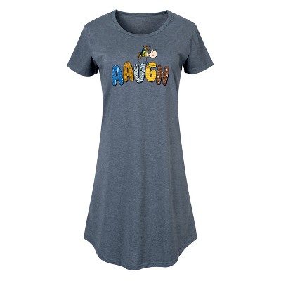 Women's Peanuts Snoopy Since 1776 Flag Heart Graphic T-shirt Dress - Heather Blue - Small