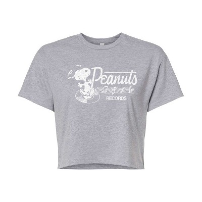 Peanuts - Snoopy Vinyl - Women's Short Sleeve Graphic T-Shirt - From the best-loved comic strip in history comes officially licensed PEANUTS apparel for fans everywhere. Show your love for Charlie Brown, Snoopy, Woodstock, Lucy, Linus, Pigpen and the whole gang. Copyright Peanuts.