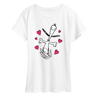 Peanuts - Snoopy White Heart - Women's Short Sleeve Graphic T-Shirt - From the best-loved comic strip in history comes officially licensed PEANUTS apparel for fans everywhere. Show your love for Charlie Brown, Snoopy, Woodstock, Lucy, Linus, Pigpen and the whole gang. Copyright Peanuts.