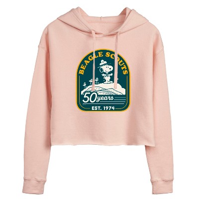 Women's Peanuts Snoopy Woodstock Circle Cropped Graphic Hoodie - Blush - Small