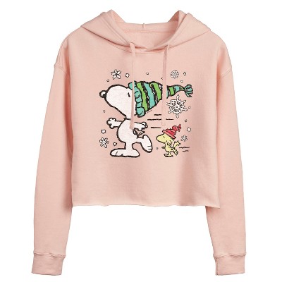 Women's Peanuts Snoopy Woodstock Igloo Cropped Graphic Hoodie - Blush - Large