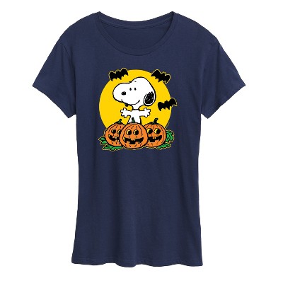 Peanuts - Snoopy Woodstock Pumpkin - Women's Short Sleeve Graphic T-Shirt - From the best-loved comic strip in history comes officially licensed PEANUTS apparel for fans everywhere. Show your love for Charlie Brown, Snoopy, Woodstock, Lucy, Linus, Pigpen and the whole gang. Copyright Peanuts.