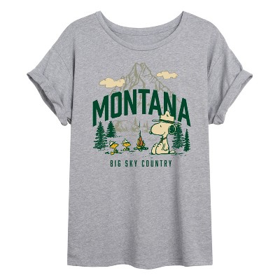 Women's Peanuts Snoopy Woodstock Retro Beagle Scouts Mountains Short Sleeve Graphic T-Shirt - Heather Charcoal - Medium
