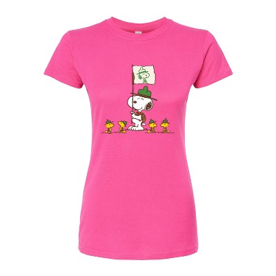 Women's Peanuts Snoopy Woodstock Snowman Fitted Graphic T-Shirt - Fuchsia - Large