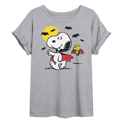 Peanuts - Snoopy Woodstock Vampire - Women's Oversized T-Shirt - From the best-loved comic strip in history comes officially licensed PEANUTS apparel for fans everywhere. Show your love for Charlie Brown, Snoopy, Woodstock, Lucy, Linus, Pigpen and the whole gang. Copyright Peanuts.