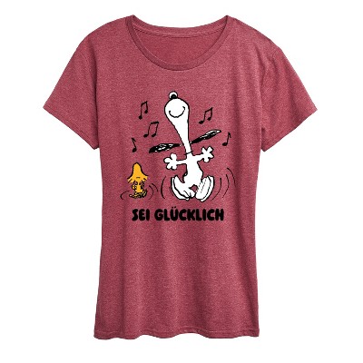 Peanuts - Snoopys Cocoa Shoppe - Women's Short Sleeve Graphic T-Shirt - From the best-loved comic strip in history comes officially licensed PEANUTS apparel for fans everywhere. Show your love for Charlie Brown, Snoopy, Woodstock, Lucy, Linus, Pigpen and the whole gang. Copyright Peanuts.