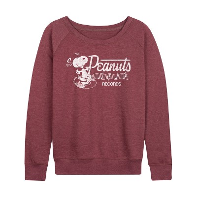 Women's Peanuts Take A Hike Lightweight French Terry Wide Neck Long Sleeve Graphic Shirt - Heather Maroon - X-Large