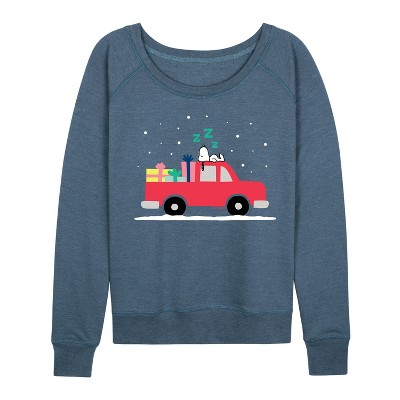 Women's - Peanuts - Taking Some Me Time Lightweight French Terry Wide Neck Long Sleeve Graphic Shirt