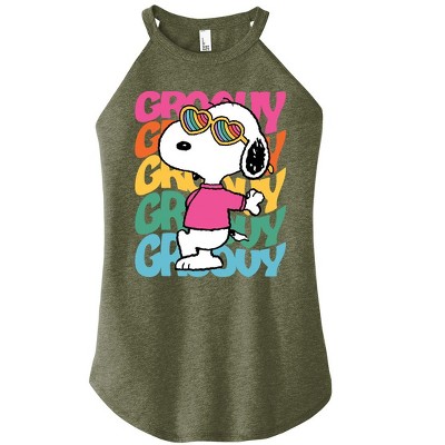 Women's Peanuts Thankful Graphic High Neck Tank - Heather Military Green - X-Large