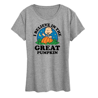 Peanuts - The Great Pumpkin Believer - Women's Short Sleeve Graphic T-Shirt - From the best-loved comic strip in history comes officially licensed PEANUTS apparel for fans everywhere. Show your love for Charlie Brown, Snoopy, Woodstock, Lucy, Linus, Pigpen and the whole gang. Copyright Peanuts.
