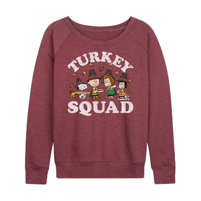 Women's Peanuts Trick Or Treat Moonlight Lightweight French Terry Wide Neck Long Sleeve Graphic Shirt - Heather Maroon - Small