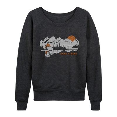 Women's Peanuts Valentines Hugging Heart Lightweight French Terry Wide Neck Long Sleeve Graphic Shirt - Heather Charcoal - Medium