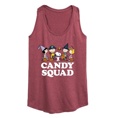 Peanuts - Wake Me For Candy - Women's Racerback Tank Top - From the best-loved comic strip in history comes officially licensed PEANUTS apparel for fans everywhere. Show your love for Charlie Brown, Snoopy, Woodstock, Lucy, Linus, Pigpen and the whole gang. Copyright Peanuts.
